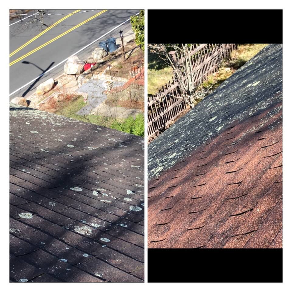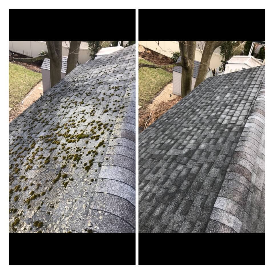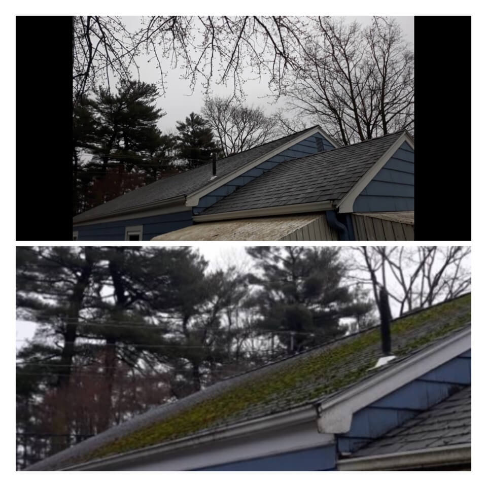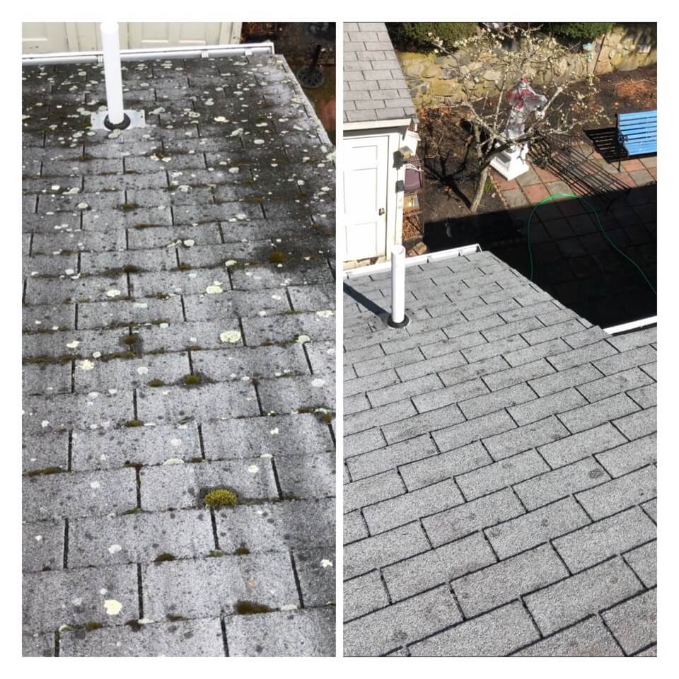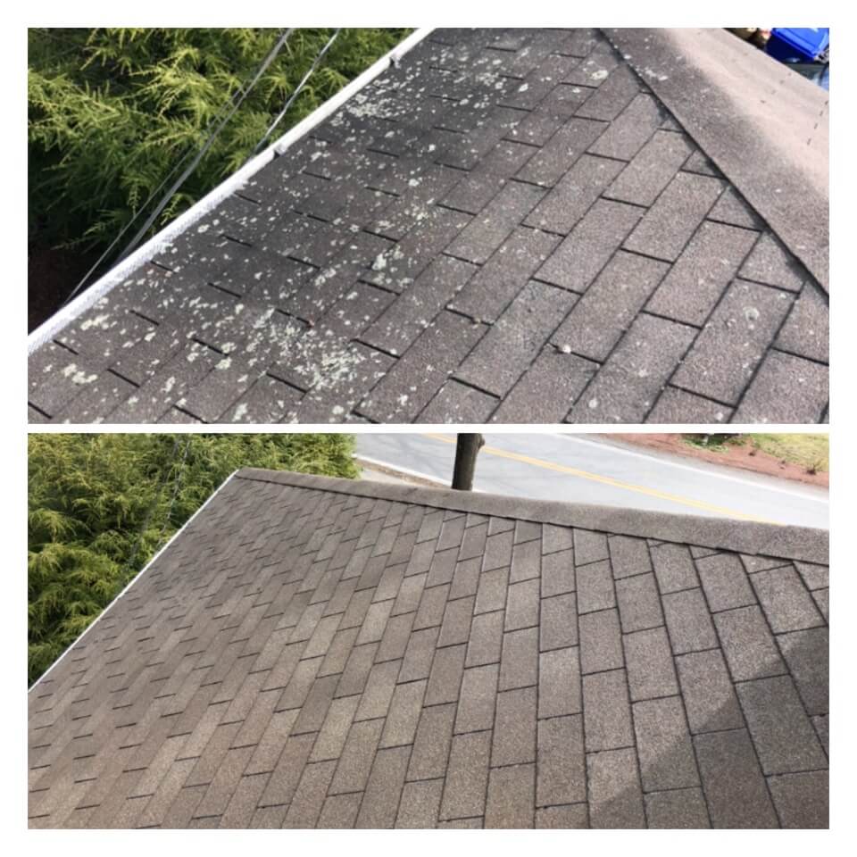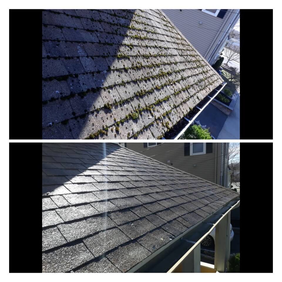 HiCleaners is the most experienced company in Swampscott, MA that deals with roof washing and roof soft washing. All of our employees are trained to recognize precise solution mixing ratios to provide you with the safest and most effective soft washing service. Roofs are a commonly neglected part of a house due to the fact that most people don’t have ladders to access it, so it is very easy to just leave it alone and forget about problems that may start to arise. Just like many home owners, discoloration and small bits of moss on a roof can be overlooked because of the misconception that it is just aesthetic. However, it isn’t just aesthetic, the moss slowly lifts the granules off the shingles which in turn shorten the life of the shingle. The moss also spreads, just like any bacteria if it is left alone for too long, it can quickly become a problem that spirals out of control. Call HiCleaners for a free quote, we only use the most advanced eco-friendly solutions and equipment to make sure the job is done right, for the safety of the employees, your plants, grass, pets, and children.